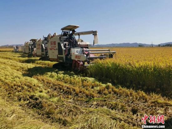 “今年又是个丰收年,现在收割的这垧地,亩产能达到1800斤至1900斤。”九月丰家庭农场经理李晓丽告诉记者,“这些收割的大米,在市面上能卖到8元一斤。”据她介绍,目前农场里最贵的功能稻米,一斤能卖一百多块。