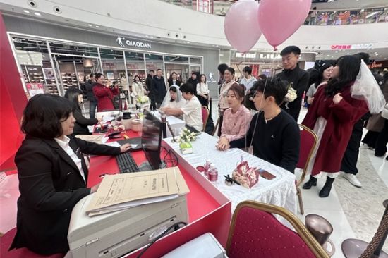 日前,延吉市民政局在万达广场一楼创新设立首个商场婚姻登记临时办证点,将政务服务融入商业场景,15对新人在浪漫氛围中沉浸式体验“登记服务+打卡留念”的幸福瞬间。此举不仅极大地方便了市民就近办理,更打破了传统“行政式登记”模式,实现了公共服务与“甜蜜经济”的有机融合。
