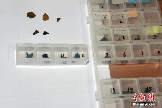 4月20日,北京,中国科学院古脊椎动物与古人类研究所展示的恐龙蛋碎壳化石标本 。中新社记者 孙自法 摄