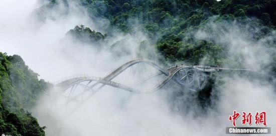 浙江神仙居如意桥云雾缭绕 宛如仙境