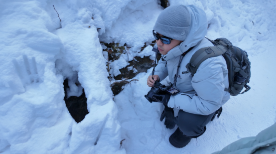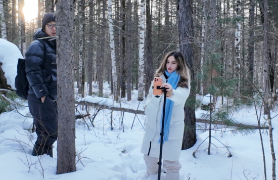 深入雪谷腹地,采风团一行涉入尚未冰封的溪水,手扶古木,沿溪而行。“这种体验太美好了,在满是积雪的森林深处行进,感觉太奇妙了。”美国网络博主于中美惊叹道。