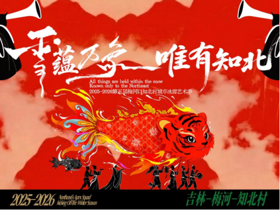 其中,“游”点来头大巡游板块,以6米长的东北福虎鱼灯和北方神鹿开道,气势恢宏;梅河口城市IP“小松宝、小鸭宝、小酒懵”将与东北民间“五仙”创意同行,展现传统与新潮的碰撞;更融入搓澡巾、黄桃罐头等网感元素,以轻幽默、新表达,生动诠释梅河口冬季生活的多样面貌。“唯有知北”户外全景多媒体情景剧,则以多媒体数字技术为载体,创新融入唢呐、萨满舞、冬捕渔猎等地域特色文化,形成一场震撼人心的视听盛宴,生动展现黑土地的生命力与人文感染力。
