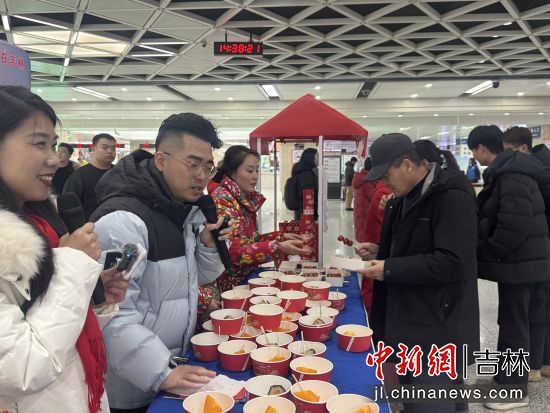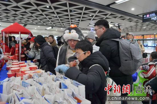 在出站口,《大东北我的家乡》音乐响起,游客刚下火车便被充满东北风情的快闪表演吸引,免费品尝的冻柿子、冻梨、冰糖葫芦,免费领取绿园文旅游玩攻略和多种购物优惠券,让全国各地的游客刚踏上东北的土地,就感受到的东北人的热情。