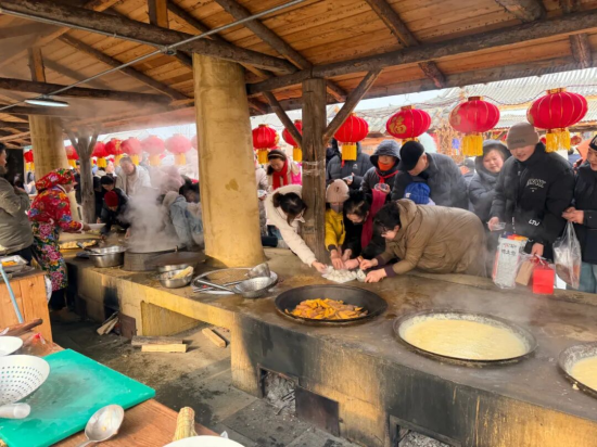 活动推出开放式沉浸式文旅体验线路,将刀画、松花石雕刻等非遗技艺展演融入其中,设置了冰上套圈赢年货、简易冰壶等6大全年龄段友好型冰雪趣味项目,同时推出杀年猪、铁锅炖等本土特色美食,明太鱼坊、粉条坊等特色业态集中亮相,更有手磨咖啡搭配现烤打糕的特色休闲体验,为游客增添新春暖意。活动当天邀请了100余名网络达人深度探访打卡,累计发布宣传作品200余条,单直播间最高浏览量突破500万。春节期间,活动已接待游客近3万人次,获得各级官方媒体及新媒体平台重点宣推,相关内容总播放量破千万,实现线上线下流量双向丰收。