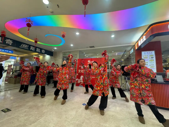 “吉风吉韵送吉祥”文艺展演走进百货大楼、欧亚敦百购物中心等城市核心商圈,为前来购物游玩的市民游客送上新春美好祝福。