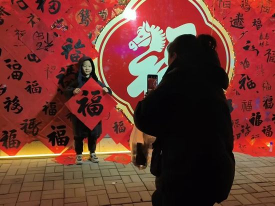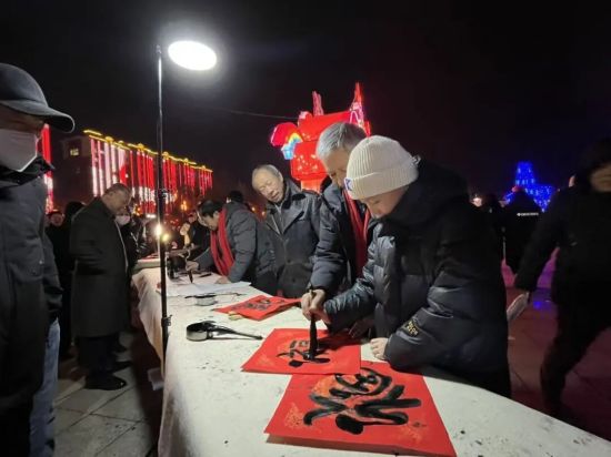 活动期间,红太阳广场人头攒动、暖意融融,三大活动同步启幕、亮点纷呈。“红太阳照边疆”游园主题灯展流光溢彩,各式花灯错落有致,将广场装扮得如梦似幻;“万福迎春”全民书写活动笔墨飘香,市民踊跃挥毫泼墨,以笔墨传递新春祥瑞与美好祝福;“马年祥瑞·万马奔腾”学生手工灯展童趣盎然,一件件充满创意的手工作品,尽显少年儿童的灵动与朝气。与此同时,“金马贺岁闹元宵 书香聚力启新程”灯谜有奖竞猜同步开展,市民积极参与、踊跃抢答,猜中谜底者喜获精美礼品,现场欢声笑语不断,节日氛围愈发浓厚。