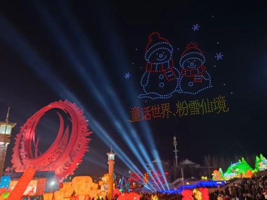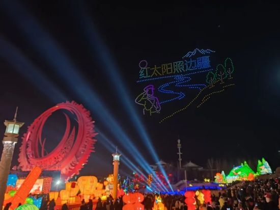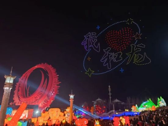 夜幕降临,活动迎来高潮时刻。“夜空璀璨 龙马精神”无人机表演震撼亮相,数百架无人机划破夜空,依次排布出“我爱和龙”“红太阳照边疆”等极具和龙特色的图案,科技的灵动与浪漫的氛围完美交融,引得现场观众纷纷驻足拍摄、赞叹不已。