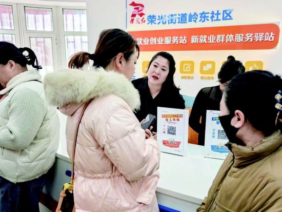 为了帮助更多像张女士一样的居民打通就业“最后一公里”,荣光街道创新推出“邻里就业服务日”线下平台,将就业服务从办公室搬到社区一线、居民身边。每月月末,在社区的就业服务站里,总会挤满前来找工作、问政策的居民,这个“小站”也成了居民相约奔赴的“家门口的就业集市”。