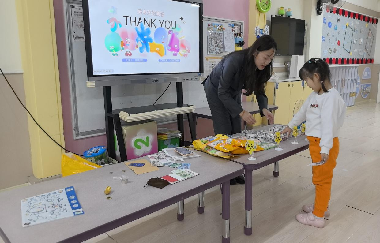 考虑到幼儿注意力特点,主讲人王琳还设计了“钱币小法官”游戏:她展示不同场景卡片,比如“小朋友帮妈妈保管手机,不随便点开付款链接”“陌生人要借手机转账,小朋友说‘要问爸爸妈妈’”,让孩子们判断“做得对不对”。孩子们积极举手,有的站起来模仿卡片里的小朋友说话,有的拉着同伴一起讨论,原本抽象的安全规则,变成了能判断、能模仿的具体行为,现场笑声与回答声此起彼伏,连老师都忍不住加入互动。