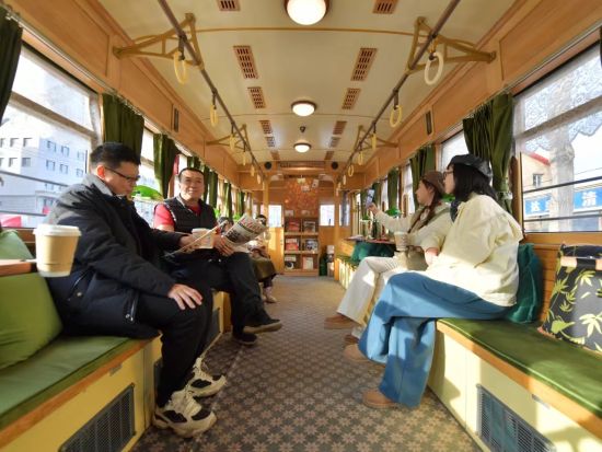 游客在长春市54路有轨电车文旅专列内参观体验。(资料图)