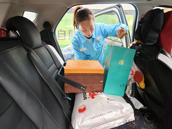 便利店管理员帮助顾客装车。李林燕/供图