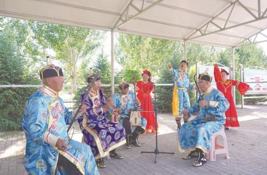 乌兰昭村文化大院队员表演马头琴。 王凯/摄