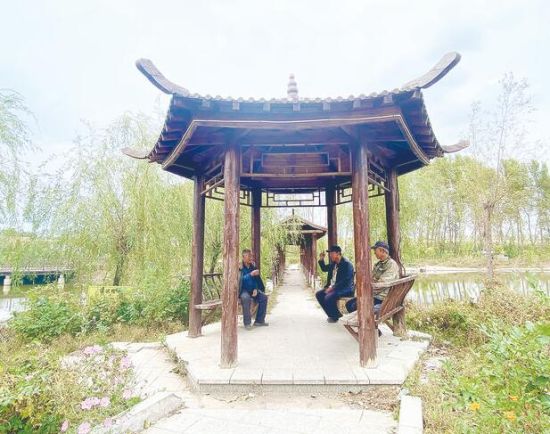 “以前这一片都是荒甸子,现在成了公园,我们经常在这儿钓鱼、遛弯、下棋、闲聊。”村民说的就是位于村委会屋子后面的公园,保留了湖面、芦苇等原有湿地生态,建设了凉亭、环廊和木栈道,古朴实用,人在其中如在画中。