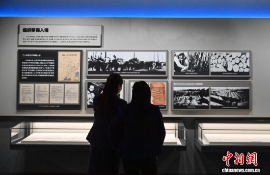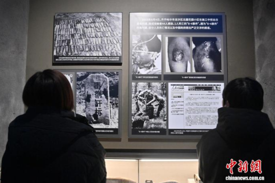12月12日,“铁证如山——日本侵华罪行档案展”在长春开展。此展通过吉林省档案馆馆藏侵华日军原始档案、长春师范大学从日本征集的民间史料,无可辩驳地证实了侵华日军在中国犯下的滔天罪行。展览设置侵华日军南京大屠杀、日军强征“慰安妇”、公然违反国际公约实施的细菌战与化学战、日本对中国东北的移民侵略等七个专题板块,展出档案195件、图片156张,包括吉林省档案馆馆藏入选《世界记忆名录》的6件档案,其中部分档案系首次公开展出。中新社记者 张瑶 摄