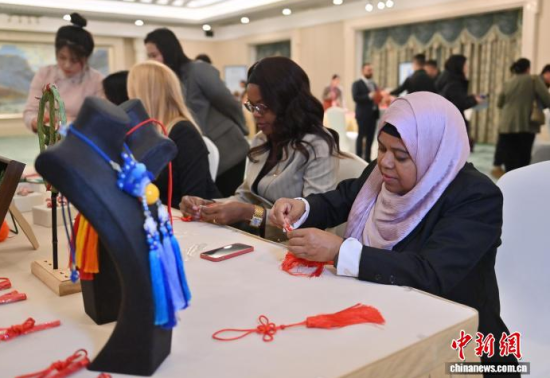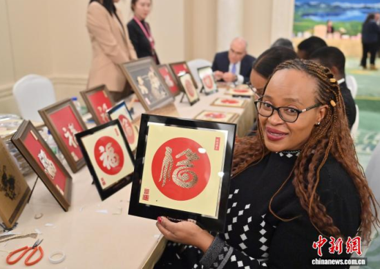 12月16日,由中国外交部组织的驻华使节代表团赴吉林省参访。当晚,代表团成员体验了查干湖鱼皮制作、长白山满族剪纸、白氏面塑、绳编和赵家传统古筝技艺等多项吉林省非物质文化遗产代表性项目,近距离了解中国传统技艺及其传承现状。中新社记者 张瑶 摄
