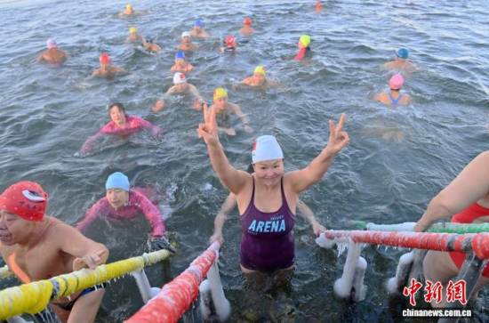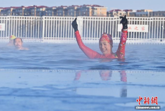 长春“银发泳者”在严寒中破冰入水迎新年