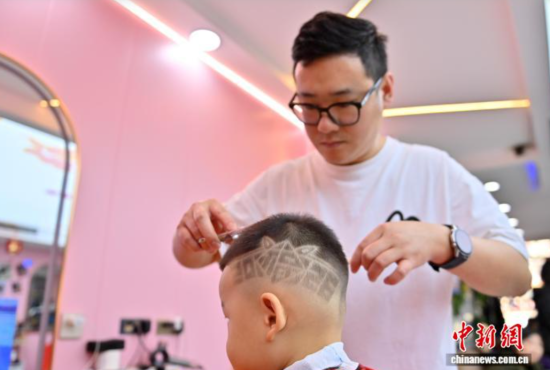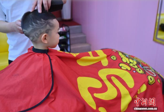 2月13日,吉林长春,小朋友在剪发。马年春节临近,不少家长带着孩子剪发,理发师也为孩子们特别设计了各式有趣的造型。中新社记者 张瑶 摄