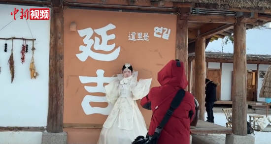 雪落吉林延吉朝鲜族民俗园 游客旅拍热度不减