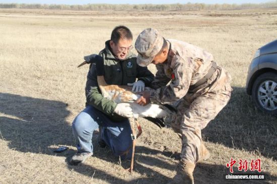 这只编号为JM-219的白鹤半个月前在黑龙江胜山国家级自然保护区附近被救护,被村民发现时体力透支、头部带伤。胜山保护区工作人员将其送入救助站喂食小鱼并进行康复护理。为帮助它重返迁徙群体,该保护区决定将其转送至白鹤迁徙路线的重要节点——吉林莫莫格国家级自然保护区。