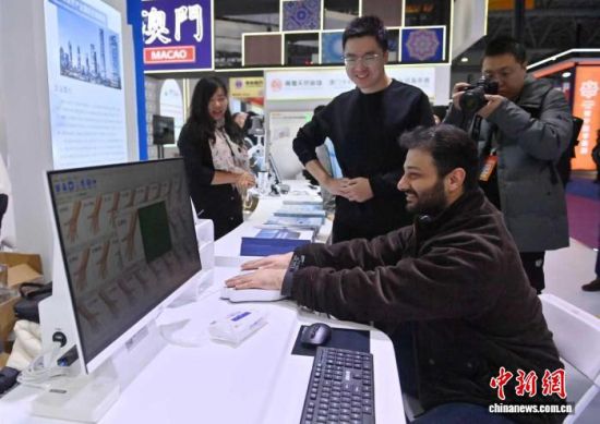 2025长春国际医药健康产业博览会暨长白山人参产业高质量发展大会上,外国观众正在体验中医经络检测仪。张瑶 摄