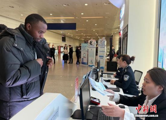 1月20日,吉林长春,外国留学生在长春龙嘉国际机场“吉便利”出入境一站式综合服务窗口办理相关业务。 中新社记者 张瑶 摄