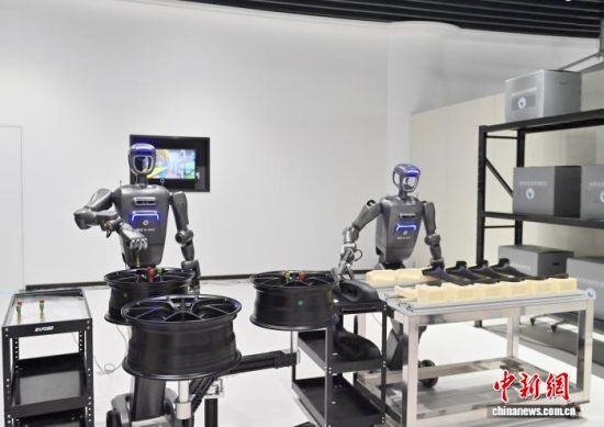 2025年9月30日,吉林省仿生机器人创新中心应用示范基地于吉林省长春市揭牌。图为工业机器人演示工作动作。(资料图) 张瑶 摄
