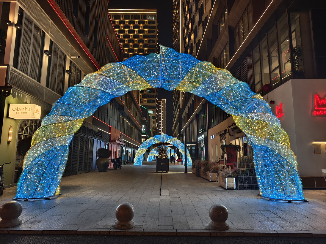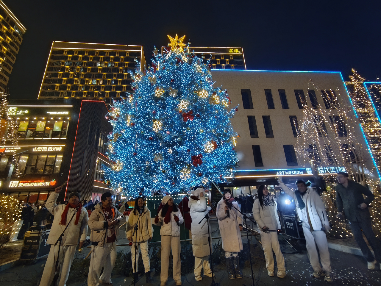 活动当晚,阿卡贝拉乐团的动人歌声为亮灯仪式拉开序幕。80万颗LED灯珠组成的8米高流光灯带同步点亮,与13米高的巨型云杉童话树交相辉映,搭配光影瀑布、欧洲网红天使灯阵、光影堤岸等多组艺术装置,将青怡坊云琅打造成流光溢彩的“童话秘境”。游客穿梭其中,步步皆景、处处可打卡,沉浸式感受“现实版童话世界”的独特魅力。