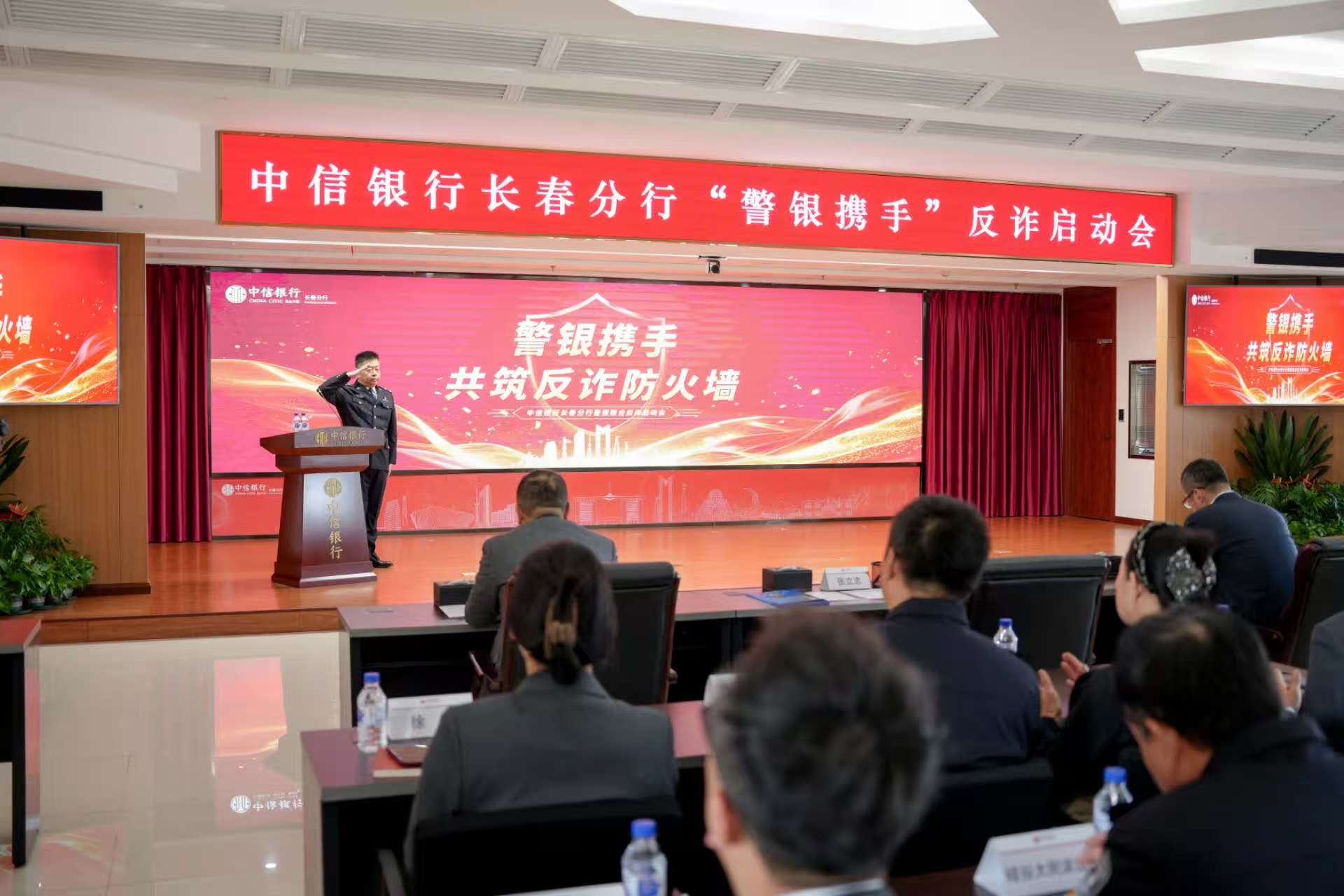 10月23日上午9时,中信银行长春分行与长春市公安局刑侦支队联合举行“警银携手,共筑反诈防火墙”启动会开启仪式。市局刑侦支队有关领导及反电信网络诈骗中心专家,吉林金融监管局消保部门负责人、各区派出所民警、社区代表、老年大学相关负责人,以及中信银行总分行相关领导和员工代表共同参会。