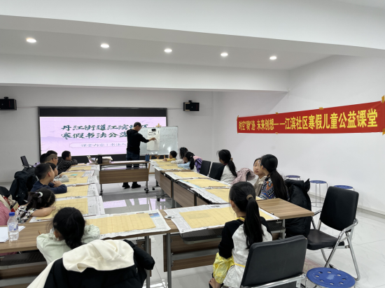 翰墨飘香润育童心,笔走龙蛇书写成长。江滨社区党委以传承中华优秀传统文化为抓手,依托书法公益课堂搭建文化传承平台,以笔墨传文化、以书香育新人。一是名师领航夯基础。邀请辖区书法教师段老师现场授课,以专业教学助力孩子们感受书法魅力、传承优秀文化;二是循序渐进长才干。段老师从握笔姿势、基本笔画教起,聚焦楷书基础,通过示范指导、一对一纠正,帮助孩子们扎实掌握书写技巧,培养持之以恒的韧劲、严谨认真的态度、精益求精的追求;三是以书润心强自信。结合书写春联、福字等形式,与孩子们一同挥毫泼墨,让孩子们在笔墨间体悟传统文化的博大精深,在书写中根植文化自信,在传承中凝聚民族力量,推动中华优秀传统文化在青少年中薪火相传。