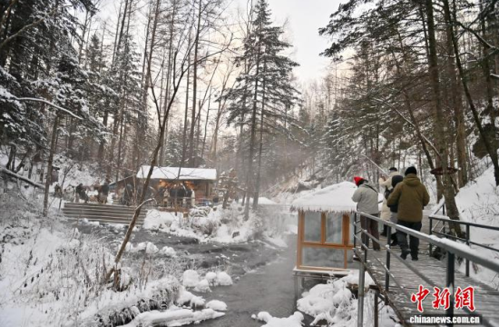 12月3日,吉林长白山银装素裹,众多游客在此体验独特的冰雪之美。新一年冰雪季到来,长白山旅游持续升温。游客漫步雪原,赏景拍照,或围炉闲话、烹茶观雪,沉浸式感受冬日魅力。中新社记者 张瑶 摄