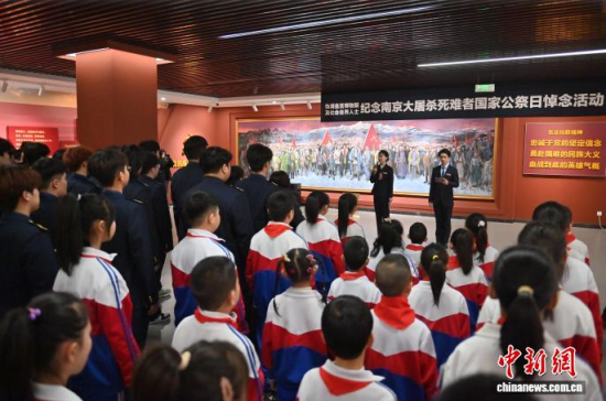 12月13日,吉林长春,民众参观“艰苦卓绝十四年——东北人民抗战史实陈列”。当天是南京大屠杀死难者国家公祭日,长春各界人士来到伪满皇宫博物院暨东北沦陷史陈列馆,悼念南京大屠杀死难同胞和抗战英烈。 中新社记者 张瑶 摄