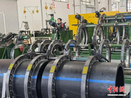 在吉林省蛟河市天岗镇的一间厂房里,三层楼高的龙门式加工中心正在运行,操作工张小华紧盯着控制面板上的数据。他面前,一个直径超过2.5米的白色塑料弯头正在模具中缓慢成型。