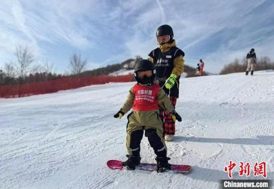 裹着厚厚的滑雪服,脚踩单板,从缓坡上徐徐滑下,雪场上的“萌娃”格外惹眼。