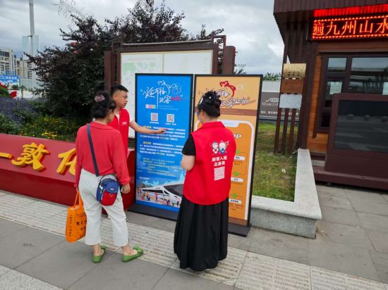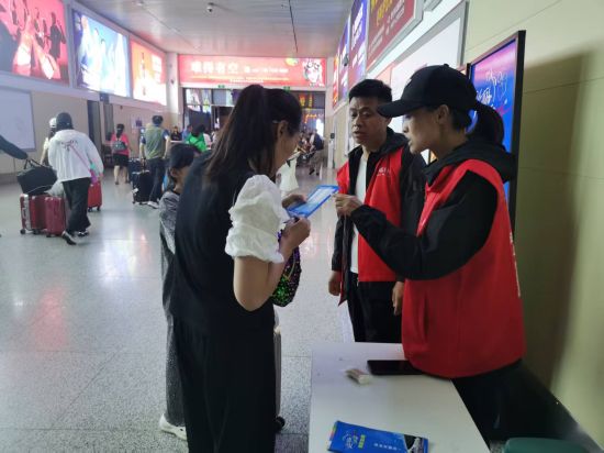 化身“福利官”,入延来敦有好礼。为确保能服务到每一位有需求的旅客,敦化高铁站志愿服务窗口实行14小时三班轮值制度,每班3人,每日共9人在岗,设置宣传展板、领取指南和咨询服务点,保证在列车运营及游客出行时间段实现服务全覆盖。按照发放政策,符合条件的人员可通过“线上+线下”的方式申领红包或零钱包奖励,志愿者们身着红马甲,在列车抵达时于出站口准时就位,主动为旅客现场讲解“迎客红包”的申领政策、操作流程,并协助完成申报。与此同时,团市委微信公众号同步发布相关宣传资讯,提升政策知晓率,让旅客感受到满满诚意。