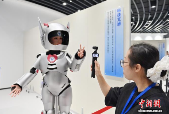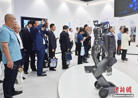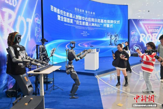 9月30日,吉林长春,参观者观看科技文旅机器人。当天,吉林省仿生机器人创新中心应用示范基地于吉林省长春市揭牌,全国首家“仿生机器人MALL”也在同期开幕。该基地集展示、体验、科普、销售等功能于一体,致力于打造沉浸式科技消费新地标。中新社记者 张瑶 摄