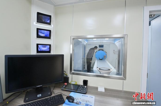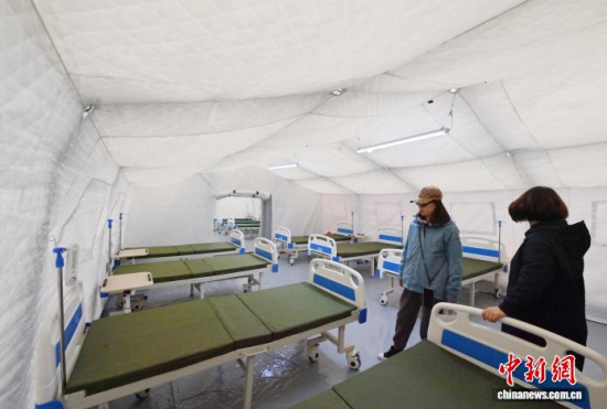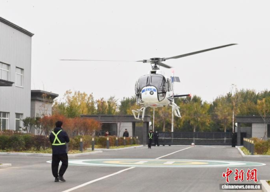 10月15日,吉林长春,急救人员在进行直升机航空紧急医学救援演练。当天,中国国家紧急医学救援基地(吉林)立体转运中心移动医院正式交付。该移动医院由吉林大学中日联谊医院承建,配备通信指挥车、移动CT车、手术车等14类15台应急车辆及43组帐篷,设200张床位,日均接诊能力达800-1000人次。中新社记者 张瑶 摄