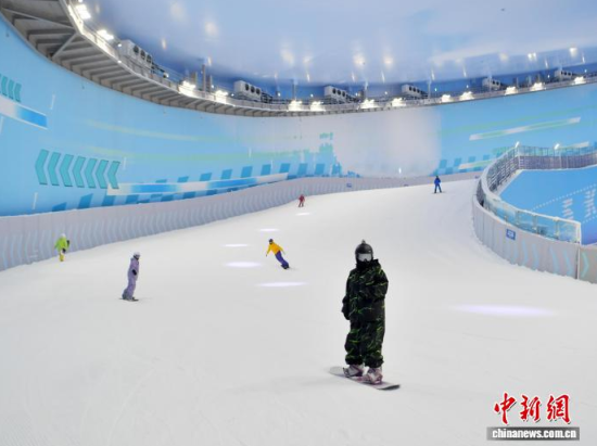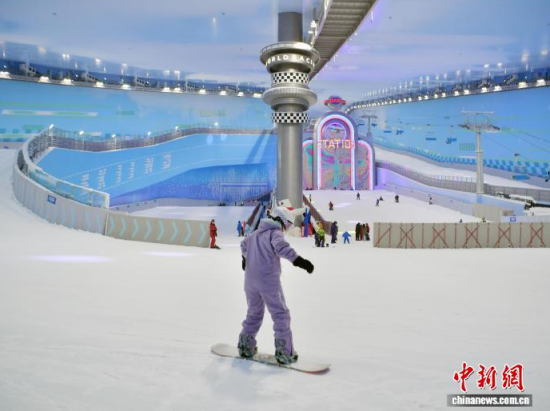 12月25日,吉林长春,滑雪爱好者乘坐缆车登顶。当天,长春万达滑雪场正式开业,该雪场为亚洲垂直落差最大的室内滑雪场,最大落差达85米,总建筑面积约5万平方米,可同时容纳约1200人滑雪。中新社记者 张瑶 摄