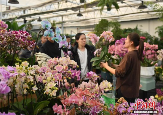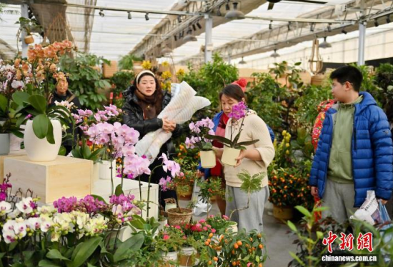 2月9日,吉林长春,商家在修剪鲜花。春节临近,长春市各大花卉市场迎来年宵花销售热潮。蝴蝶兰、大花蕙兰、杜鹃花等象征喜庆的鲜花琳琅满目,吸引众多市民前来选购。花商们忙碌备货、打包,现场一片繁忙景象。中新社记者 张瑶 摄