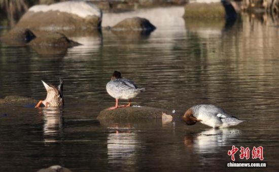 在抚松县西江监测点,中秋沙鸭在浅水栖息。赵冷冰 摄